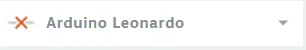 Da der Arduino Leonardo noch nicht angeschlossen war wird dieses durch ein rotes Kreuz in der Auswahlliste angezeigt.