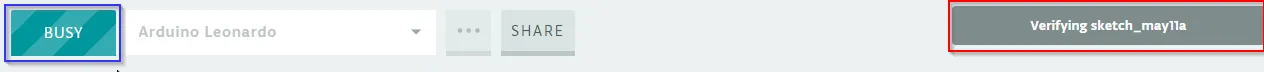 Diesen Vorgang der Überprüfung des Sketches kann man mit einem erneuten Klick auf die Schaltfläche „Busy“ abbrechen. (Die Schaltfläche wechselt das Design beim Überfahren mit der Maus.)