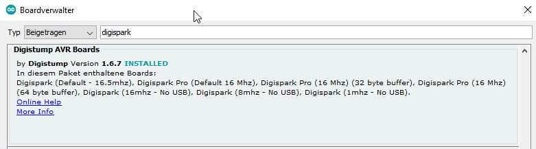 Einrichten des DigiSpark Microcontroller mit ATtiny85 Chip