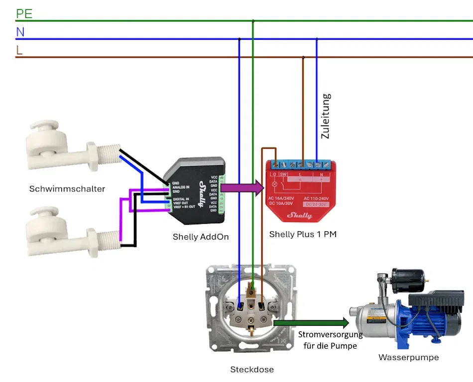 Schaltung - automatische Pumpensteuerung mit Shelly und Schwimmschalter