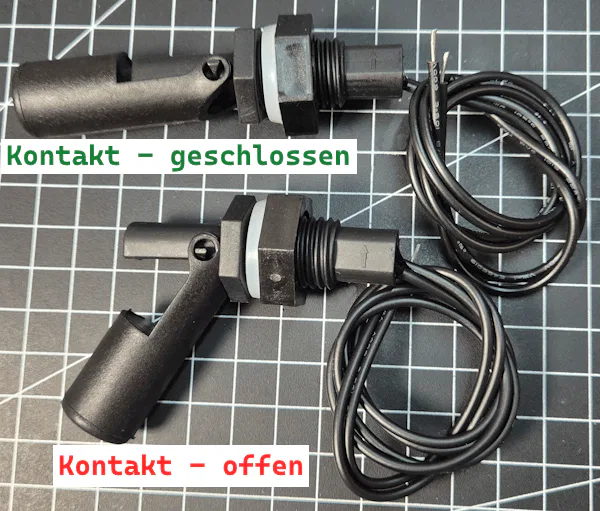 Je nach Einbaulage oder Ausrichtung des Schwimmschalters kann das Verhalten unterschiedlich sein. Manche Schalter schließen bei steigendem Wasserstand, andere öffnen.