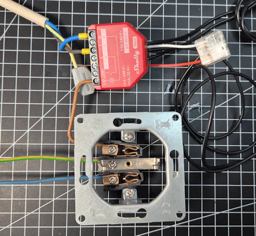 Der Shelly Plus 1PM wird in dieser Schaltung mit 230 V betrieben. Daher ist beim Aufbau besondere Vorsicht geboten.