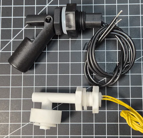 Auf dem Markt gibt es eine Vielzahl an Schwimmschaltern in unterschiedlichen Bauformen. In meinem Fall verwende ich Modelle, die seitlich montiert werden. Diese eignen sich besonders gut für den Einbau in Gefäße.