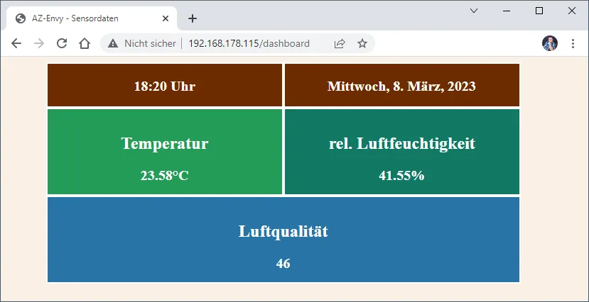 In diesem Beitrag möchte ich dir zeigen, wie du die Sensordaten vom AZ-Envy auf einer Webseite anzeigen lässt.