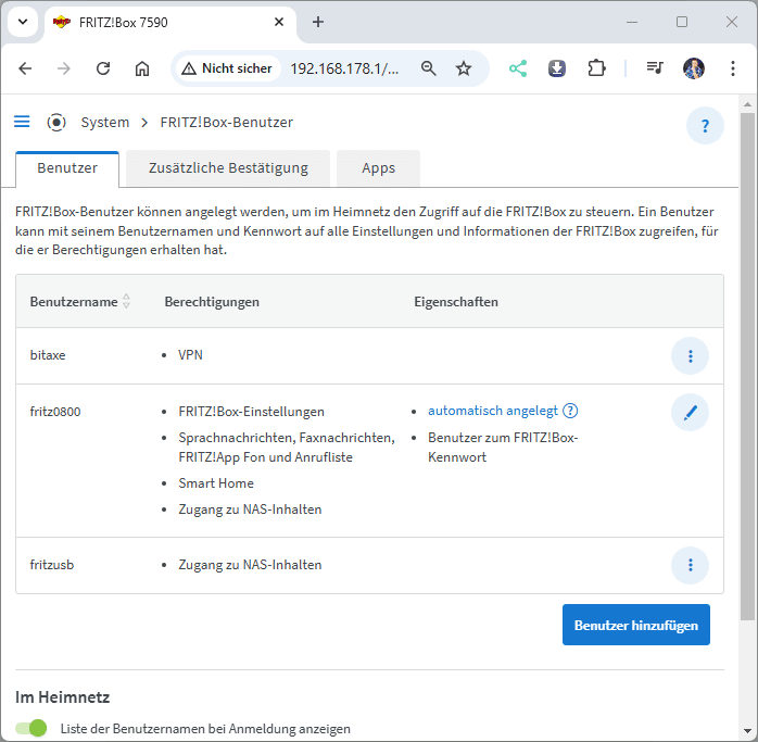 Für diesen Beitrag verwende ich meine Fritz!Box 7580 mit dem aktuellen OS 8.00. Auf der Seite IPSec-VPN zur FRITZ!Box unter Android einrichten findest du eine einfache Anleitung, wie du einen Benutzer einrichtest und eine VPN-Verbindung mit einem Smartphone aufbaust. Nachfolgend werde ich dir die Schritte jedoch genau erläutern (im oben verlinkten Video findest du dieses natürlich ebenso).