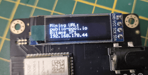 Um den Bitaxe Gamma v601 in Betrieb zu nehmen, ist es notwendig, das mitgelieferte OLED-Display anzulöten. Dieses wird oben rechts an der Position J3 angebracht. Obwohl in der Anleitung der Eindruck entstehen könnte, dass das Display optional ist, ist es tatsächlich zwingend erforderlich. Es dient ausschließlich dazu, wichtige Statusinformationen wie Geschwindigkeit, Hashrate und Systemstatus abzulesen. Eine Konfiguration des Miners erfolgt darüber jedoch nicht.