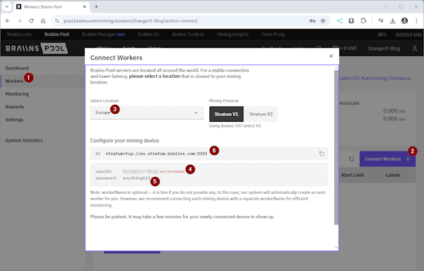 Einrichten eines Workers in Braiins Pool