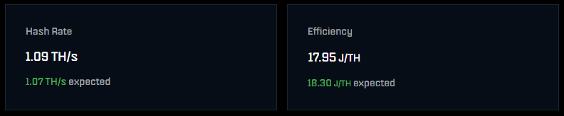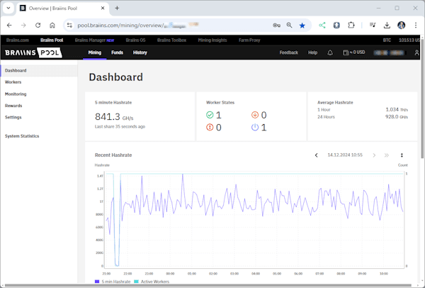 | Hashrate | 1,20 TH/s |