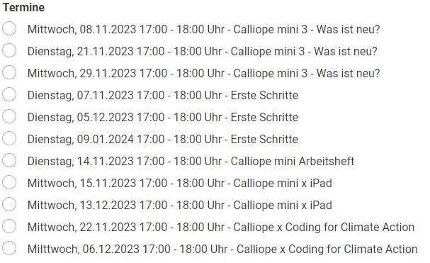 Du kannst vorab im November an diversen Livesessions teilnehmen. Dazu kannst du dich unter https://calliope.cc/formulare/onlinesessions für diverse Termine einschreiben.