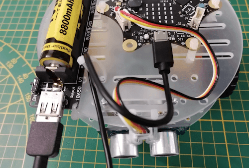 Stromversorgung für das 2WD Chassis mit Calliope Mini 3 und Ultraschallabstandssensor