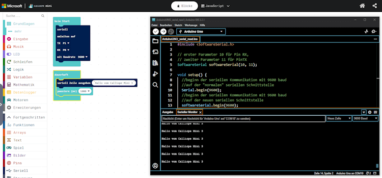Aufbau der seriellen Verbindung zwischen dem Arduino und Calliope Mini 3