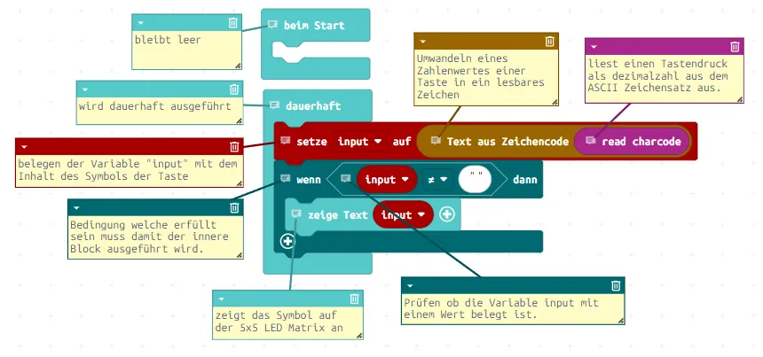 - Auslesen einer Tastatureingabe in MakeCode am Calliope Mini