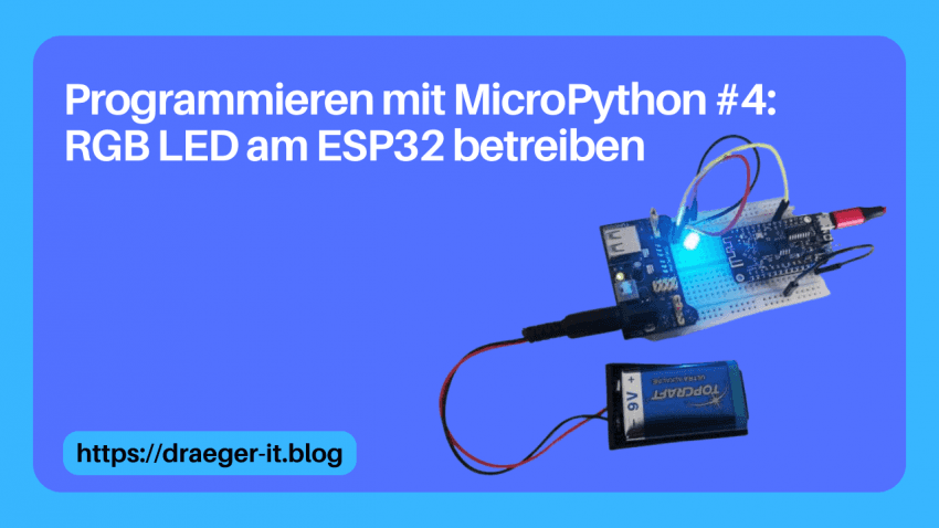 Wie man eine RGB LED am ESP32 mit MicroPython programmiert, möchte ich dir in diesem Beitrag erläutern. benötigte Bauteile Für den betrieb einer RGB LED am ESP32 benötigst du folgende Bauteile: Hinweis von mir: Die mit einem Sternchen (*) markierten Links sind Affiliate-Links. Wenn du über diese Links einkaufst, erhalte ich eine kleine Provision, die…