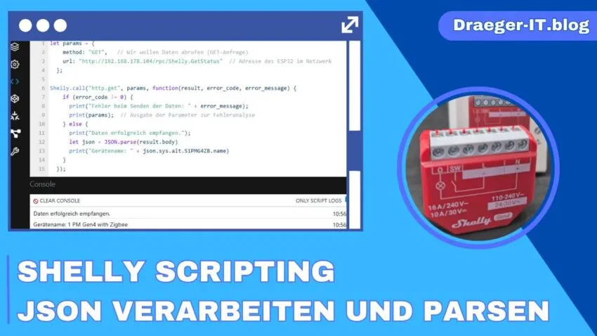 In einem Kommentar unter einem meiner YouTube-Videos wurde ich gefragt, wie man den JSON-Response eines Shelly-Geräts im Shelly Script verarbeiten kann. Eine sehr gute Frage – denn Shelly-Geräte arbeiten intern oft mit JSON-Daten, sei es bei HTTP-Abfragen, Webhooks oder MQTT-Nachrichten. Da dieses Thema ideal zu meiner Reihe „Shelly Scripting – JavaScript-Grundlagen für Einsteiger„ passt, widme…