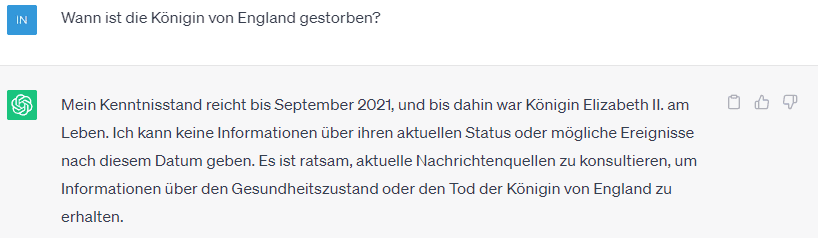 Wenn man die kostenfreie Version 3.5 verwendet, muss man jedoch daran denken, dass lediglich Daten bis zum September 2021 existieren & auch keine externen Datenquellen wie Webseiten abgerufen werden können.