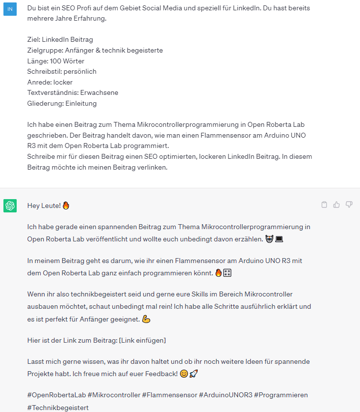 Beispiel 2 – SEO Profi für die Erstellung von LinkedIn Beiträgen