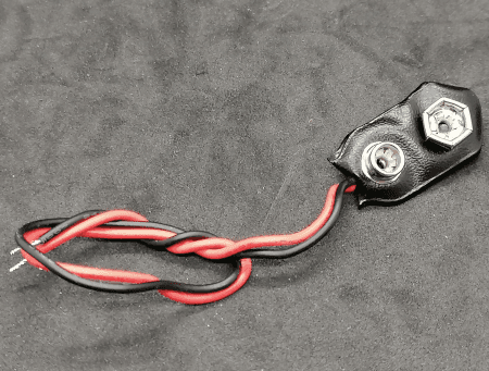 Des Weiteren sind die Leitungen des Batterieclips farbig markiert, das schwarze ist der Minuspol und das rote der Pluspol.