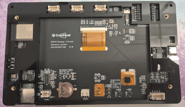 Ein Blick auf die Anschlussmöglichkeiten zeigt: Das Panel will mehr sein als nur ein Display. Neben USB-C (für Daten und Strom) sind auch ein microSD-Karten-Slot, ein Audio-Ausgang, ein Kamera-Port und eine GPIO-Stiftleiste vorhanden. Damit lässt sich das CrowPanel leicht erweitern und in größere Projekte einbinden – sei es zur Datenspeicherung, als Audioplayer oder zur Anbindung an Sensoren und Aktoren.