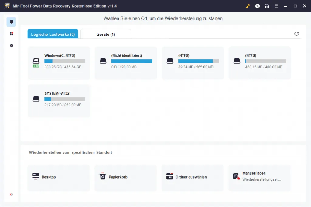 Dieses Tool unterstützt alle bekannten Datenträger wie USB-Sticks, SD-Karten, SSDs und HDDs. Du kannst mit dieser kostenlosen Datenwiederherstellungssoftware sogar Daten von deiner SD-Karte aus dem Androidgerät wiederherstellen, was dieses Tool gleich doppelt nützlich macht.
