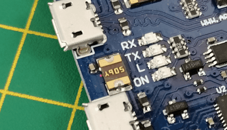 Der Arduino DUE verfügt über eine selbst rücksetzende Sicherung, welche den USB-Port vor Überlast & Kurzschluss absichert. Wenn mehr als 500 mA an den USB-Anschluss angelegt werden, unterbricht die Sicherung automatisch die Verbindung, bis der Kurzschluss oder die Überlast beseitigt ist.