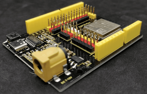 Der Mikrocontroller ESP32 Plus verfügt zusätzlich über einen Jack-Adapter für die Spannungsversorgung von 7 bis 12V und eine USB-C Schnittstelle um diesen zu programmieren.