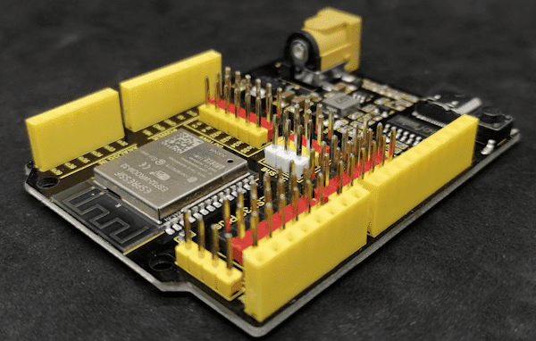 Wie erwähnt hat der Mikrocontroller den gleichen Formfaktor wie der Arduino UNO R3 jedoch hat dieser ein paar zusätzliche Pins bzw. Buchsen für GPIOs.