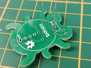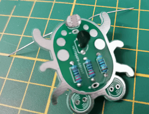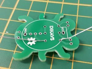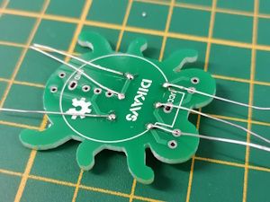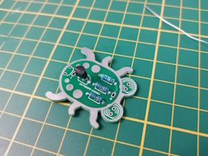 Zum Schluss wird der Batterieclip eingelötet und damit ist der kleine Käfer fertig zusammengebaut.