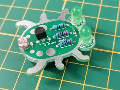Zum einen lernst du beim Aufbau des Bausatzes wie man lötet und zum anderen wie elektronische Komponenten wie Leuchtdioden, Fotowiderstände und Transistoren funktionieren.