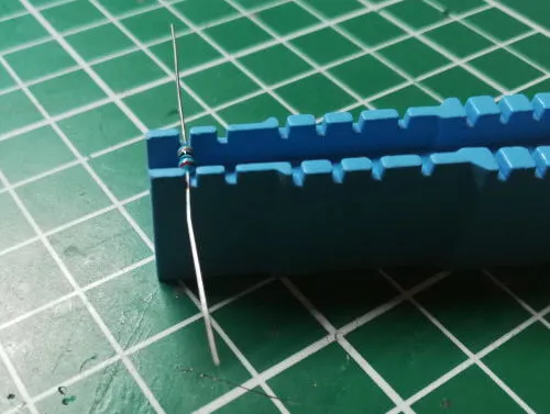 Die Widerstände habe ich mit der Widerstandsbiegebank auf der kleinsten „Einstellung“ gebogen, dieses war für mich das Ideale Rastermaß.