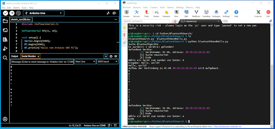 Das Python-Skript kannst du wie eingangs erwähnt nutzen, um zum Beispiel mit einem Zeichen auf einem Mikrocontroller einen Befehl auszuführen oder auch Daten zu versenden, welche weiterverarbeitet werden sollen.