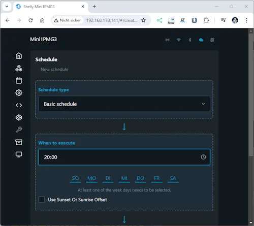 Erstellen eines Zeitplanes via Shelly Smart Control App