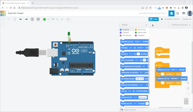 Erstellen einer einfachen Arduino-Simulation mit TinkerCAD