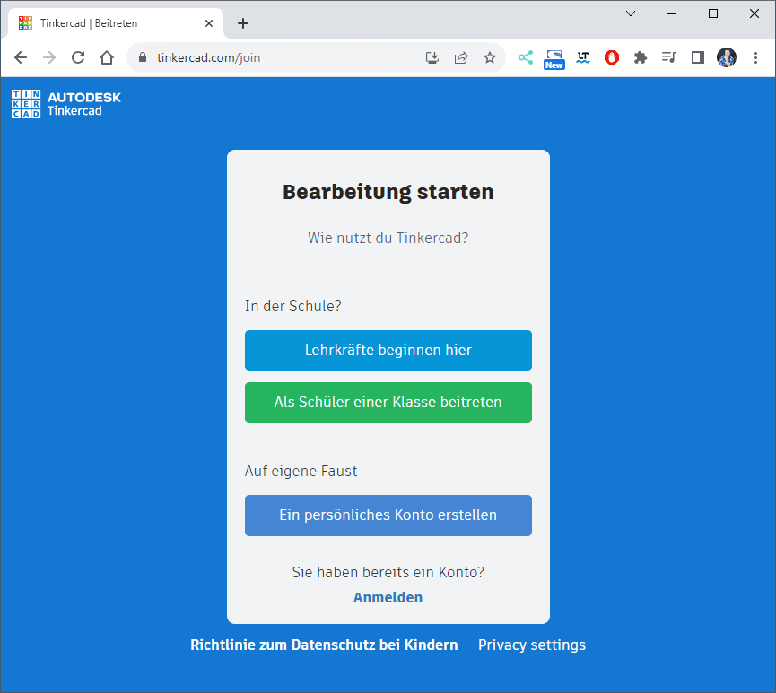 Anmelden an TinkerCAD