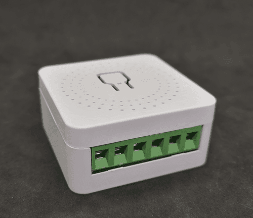 An diesem kleinen smarten Schalter findest du eine 6fach Schraubleiste und auf der Vorderseite einen Taster, welcher im Gehäuse eingelassen ist.