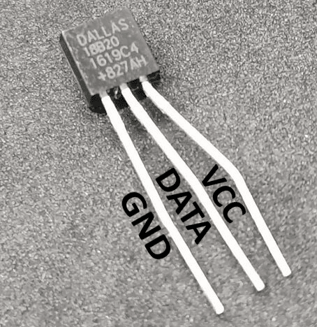 The tiny sensor DS18B20 has three legs, when you look at the case you will see a flat side and a rounded side. At the flat side you find the specifications. To get the right pinout, please lay down this part at the rounded side, so the flat side is up.
