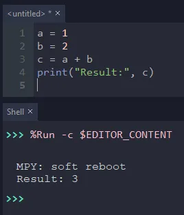 Interactive Prompt (REPL): MicroPython provides an interactive prompt (REPL – Read-Eval-Print Loop), which allows commands to be executed immediately over USB-Serial. This is particularly useful for quickly testing and debugging code on the hardware.