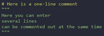 # Here is a one-line comment """ Here you can enter several lines can be commented out at the same time """