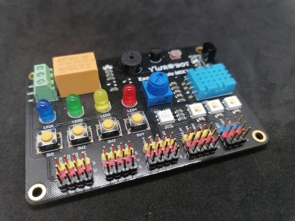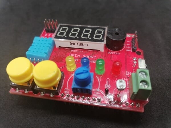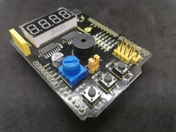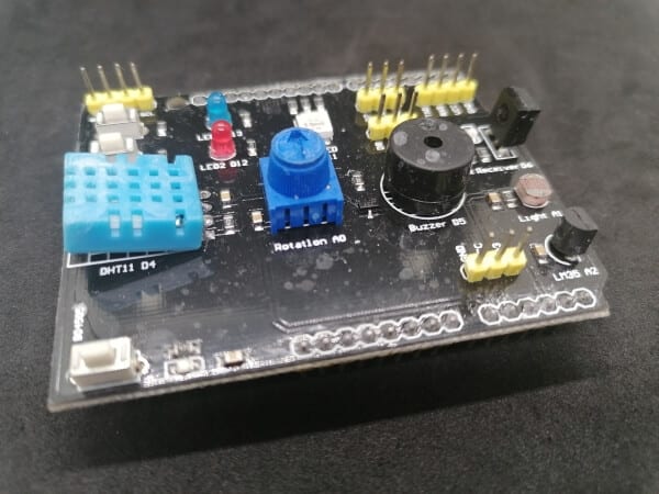 From the company yurobot, you get a multifunctional shield, this shield you can’t stick onto an Arduino, for this shield you need some breadboardwires.