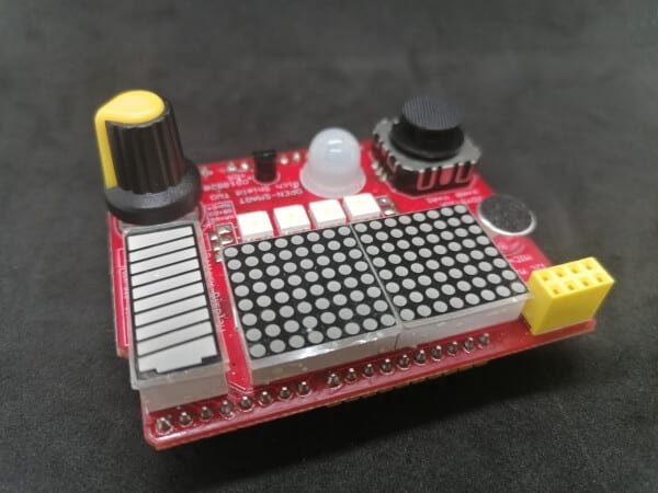 In summary, the multifunctional shields have various sensors & actuators built in, which can be programmed via the Arduino. These sensors are already connected via SPI, I²C, analog pins etc. and therefore an otherwise error-prone wiring is not necessary.