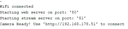 When the process is complete, then the connection to the Wi-Fi network is established and the IP address of the ESP32-CAM module is displayed.