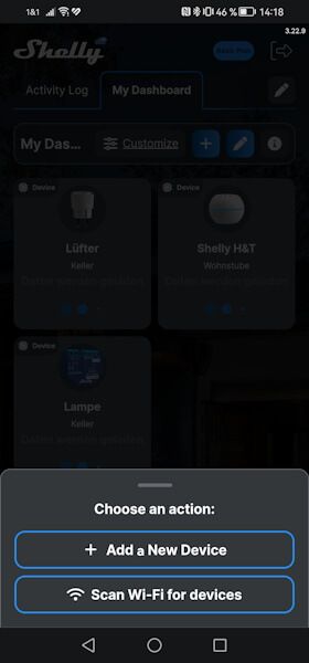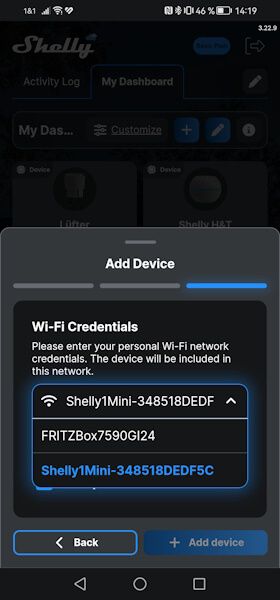 The Shelly Plus 1 Mini can be set up like any other Shelly via WiFi. To do this, you first connect to the device’s access point and can then configure the local 2.4 GHz WiFi network via a web interface. Once this is done, you switch back to the Shelly Smart Control app and can then add the device there as usual. (In my case, I have several Fritz! repeaters in use, so I have several 2.4 GHz networks available).