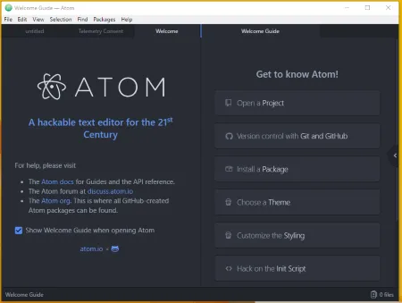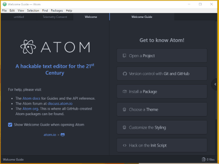 Nachdem auch das Tool Clang installiert wurde kann die Software „Atom“ gestartet werden.