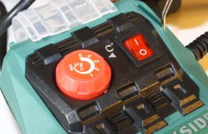 Die Temperatur des Lötkolbens wird über ein Rädchen auf dem Gehäuse eingestellt. Leider fehlt hier ein Display zur Temperaturanzeige, somit kann man nur schätzen. Auch ist dieses Rädchen sehr klein und somit die Abstände zwischen den Zahlen sehr gering, somit muss man sehr gut schätzen können, ob die richtige Temperatur für das eingesetzte Lötzinn eingestellt ist.