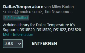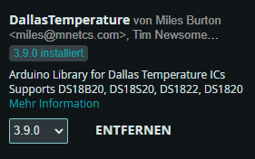 Des Weiteren benötigen wir noch die Bibliothek DallasTemperature von Miles Burton.