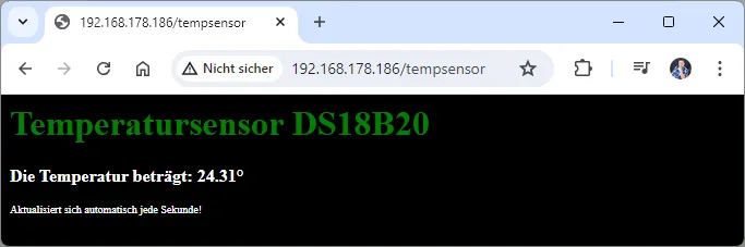 webseite += "   <h1>Temperatursensor DS18B20</h1>";