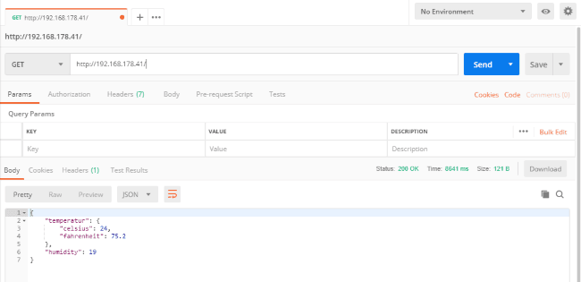 Wir wollen zunächst die Temperatur in Celsius sowie die relative Luftfeuchtigkeit anzeigen. (Ich lasse in diesem Beispiel die Temperatur in Fahrenheit mal außen vor.)