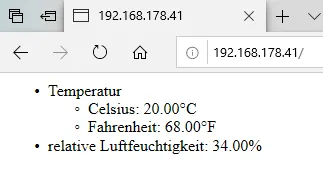 Wir wollen zunächst die Temperatur in Celsius sowie die relative Luftfeuchtigkeit anzeigen. (Ich lasse in diesem Beispiel die Temperatur in Fahrenheit mal außen vor.)