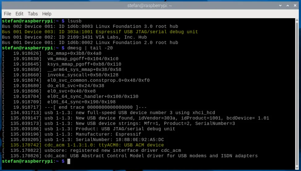 Das bedeutet, dein Board ist unter /dev/ttyUSB0 erreichbar (bei manchen Modellen auch /dev/ttyACM0). Merke dir diesen Pfad, du brauchst ihn gleich beim Flashen.