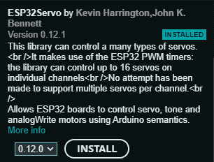 Zum Ansteuern des Servomotors benötigen wir eine spezielle Bibliothek für den ESP32, welche genau wie die ggf. bereits bekannte für den Arduino funktioniert.