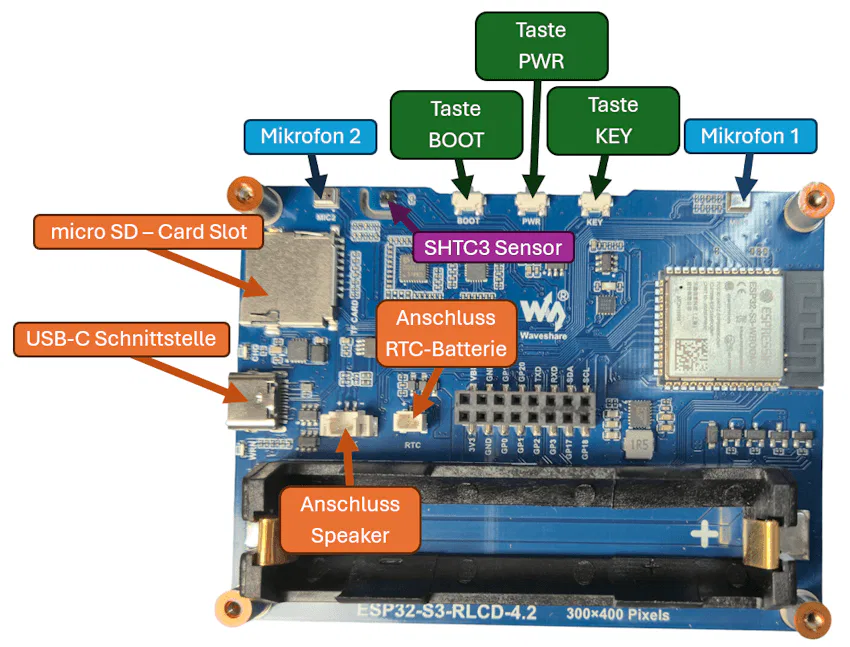 Werfen wir einen genaueren Blick auf den Aufbau des Waveshare ESP32-S3 RLCD 4.2.